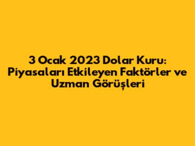 3 Ocak 2023 tarihinde dolar kuru hakkında uzmanların görüşleri, yatırımcılar için yol gösterici niteliğindedir. Uzmanlar, genellikle farklı senaryolar üzerinde durarak, dolar kurunun gelecekteki yönü hakkında tahminlerde bulunurlar. Bu tahminler, genellikle, küresel ekonomik gelişmeler, jeopolitik riskler ve merkez bankalarının para politikaları gibi faktörlere dayanır.