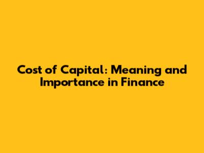 Cost Of Capital: Meaning And Importance In Finance