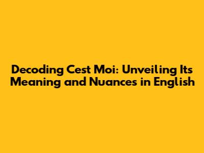 Deciphering 'C'est Moi': Meaning And Usage Explained