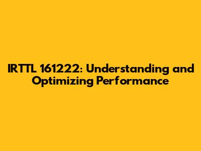 IRTTL 161222: Understanding And Optimizing Performance