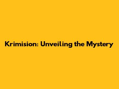 Krimision: Unveiling The Mystery