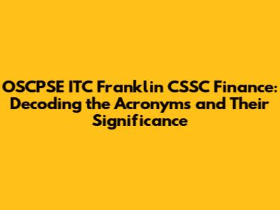 Navigating the world of finance and investments can feel like deciphering a secret code. You're bombarded with acronyms, each representing a complex entity or concept. Today, we're cracking the code on a few that might have popped up on your radar: OSCPSE, ITC, Franklin, and CSSC. We'll break down what each of these stands for, what they do, and why they matter in the grand scheme of finance.