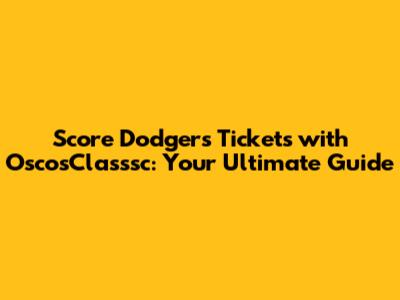Score Dodgers Tickets With OscosClasssc: Your Ultimate Guide