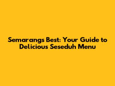 Semarang's Best: Your Guide To Delicious Seseduh Menu