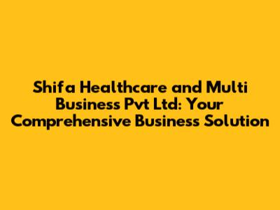 Hey guys! Ever heard of a company that does it all? Well, let me introduce you to Shifa Healthcare and Multi Business Pvt Ltd. This company is making waves with its diverse portfolio and commitment to quality. In this article, we’ll dive deep into what makes Shifa Healthcare stand out, exploring its services, values, and overall impact. Whether you’re a potential client, partner, or just curious, stick around to get the lowdown on this multi-faceted business. Trust me, you'll want to know what Shifa Healthcare is all about, especially if you're looking for a one-stop solution for various business needs. They're not just another company; they're a game-changer, setting new standards in healthcare and beyond. So, let's get started and uncover the unique aspects of Shifa Healthcare and Multi Business Pvt Ltd. You might just find the perfect solution you've been searching for!