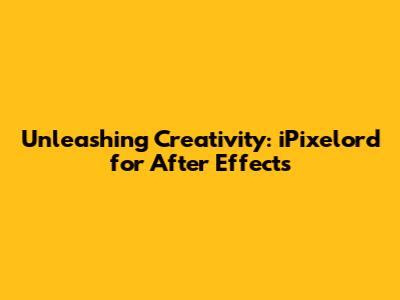 Unleashing Creativity: IPixelord For After Effects