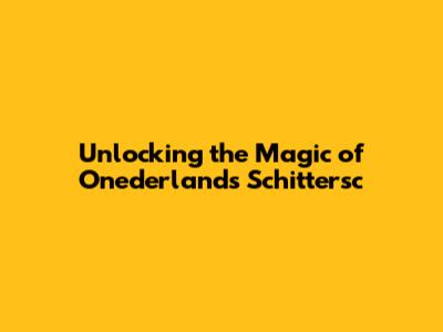 Unlocking The Magic Of Onederlands Schittersc