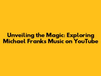 Unveiling The Magic: Exploring Michael Frank's Music On YouTube