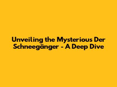 Unveiling The Mysterious 'Der Schneegänger' - A Deep Dive