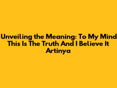 Unveiling Truth: What 'To My Mind This Is The Truth And I Believe It' Means