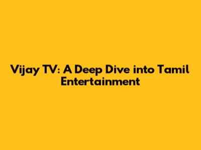 Hey guys! Ever found yourself glued to the telly, lost in a world of drama, comedy, and maybe even a bit of romance? Well, if you're a fan of Tamil entertainment, chances are you've spent some quality time with Vijay TV. This channel has been a cornerstone of Tamil television for years, bringing a diverse range of programs into homes and hearts across the globe. Today, we're going to dive deep into the world of Vijay TV, exploring its history, popular shows, the stars that shine, and what makes it such a beloved channel. Buckle up, because we're about to embark on an exciting journey through the world of Tamil entertainment!